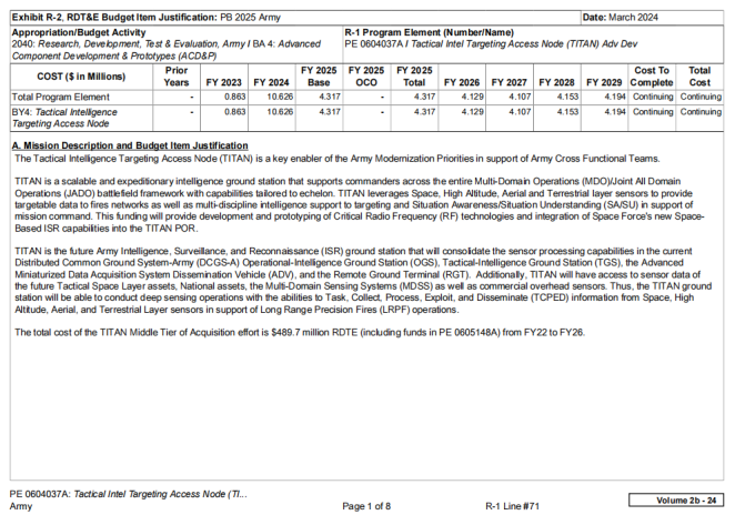 一位威胁行为者在暗网市场发帖称正在售卖一份美国陆军战术地面站TITAN的预算文件,给出了频道并提供了下载渠道,其中包含各种预算和项目数据。