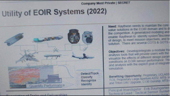 一位威胁行为者称他正在售卖一份雷神公司涉及高能激光吊舱(HEL POD)概念、AIM-9X 响尾蛇空空导弹(GL-AIM-9X)及车辆防护技术的文件,包含集成设计与性能规划等。