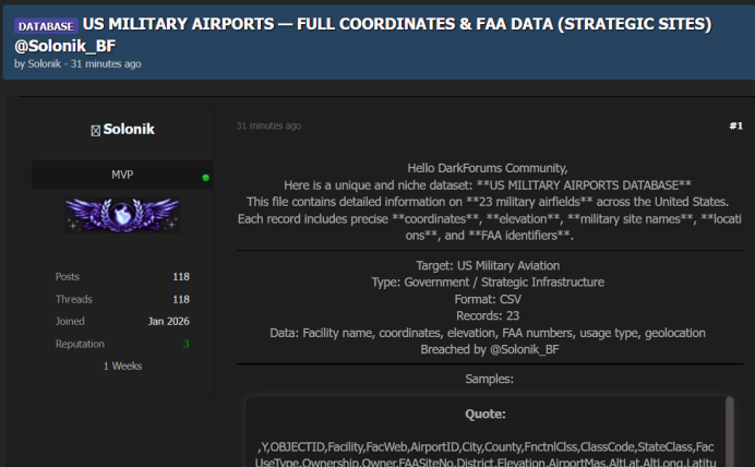 【绝密】美国军用机场完整坐标|0.zone 暗网日报【第829期】