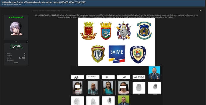 委内瑞拉百万军职人员数据遭泄,ID 与密码流向不明|0.zone 暗网日报【第754期】
