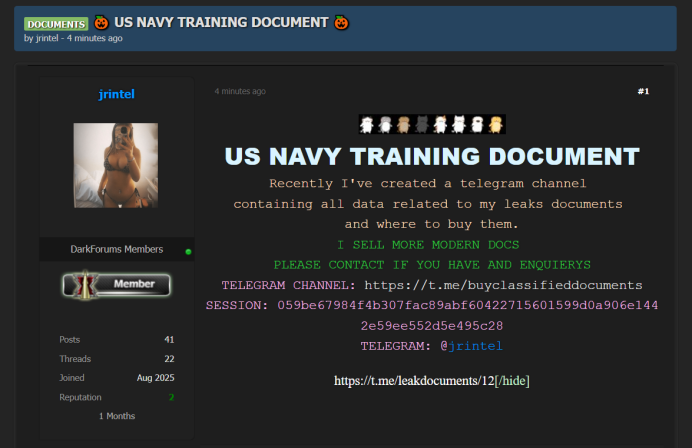 美国海军训练文件泄露,机密还是绝密?|0.zone 暗网日报【第750期】