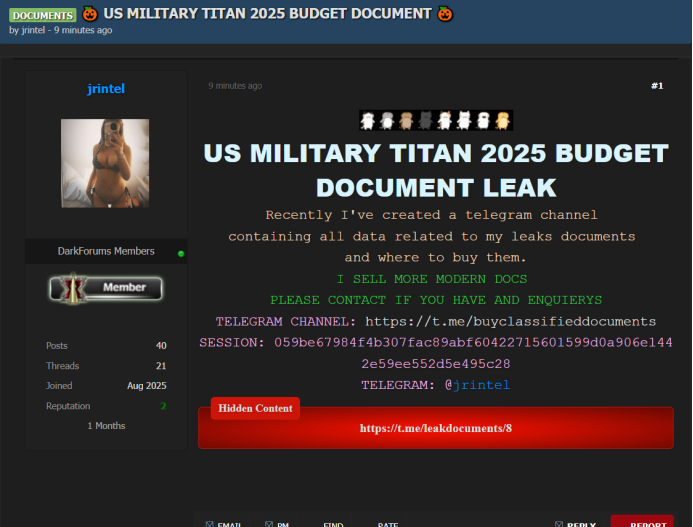 美国陆军战术地面站TITAN预算文件泄露,或暴露军事采购与部署细节|0.zone 暗网日报【第749期】