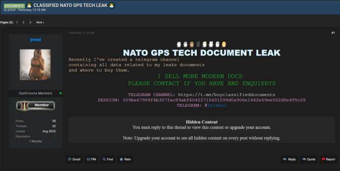 北约GPS技术机密文件泄露,会带来怎样的风波?|0.zone 暗网日报【第747期】