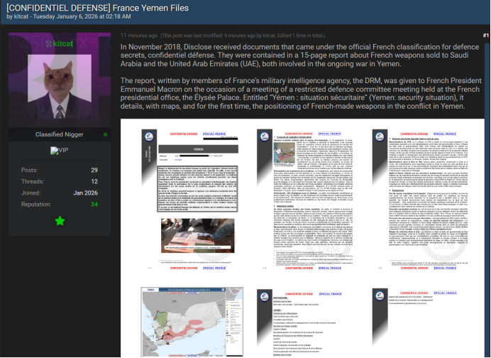 法国官方国防机密文件泄露在暗网中,涉及法国武器在也门冲突中的部署|0.zone 暗网日报【第821期】