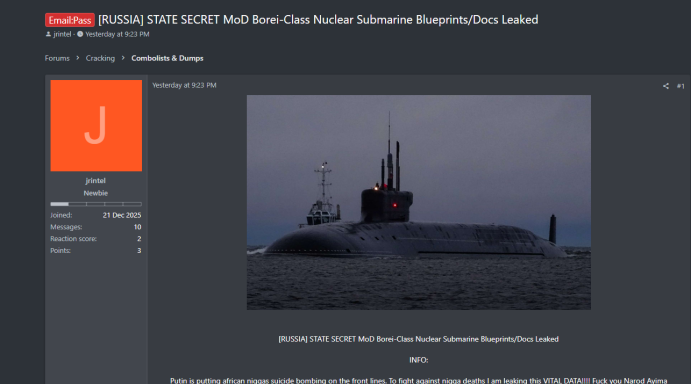 【绝密】俄罗斯国防部博雷级核潜艇蓝图泄露在暗网中|0.zone 暗网日报【第826期】