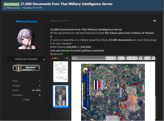 暗网中流传出27000份来自泰国军事情报服务器的文件|0.zone 暗网日报【第825期】