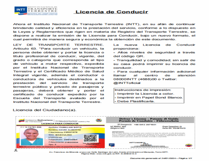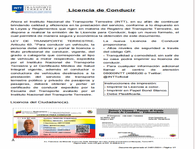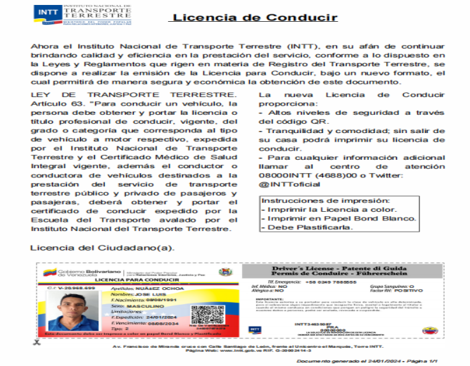 一位威胁行为者宣称他正在售卖委内瑞拉国家陆路运输研究所(INTT)的数据,泄露时间为2026年1月16日,数据总量达500GB,包含姓名、身份证信息、出生日期、签发日期、有效期、证件类型、验证码、紧急联系电话、医疗信息、血型等字段。