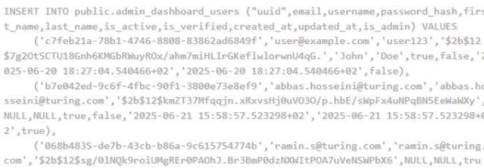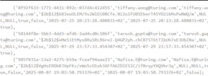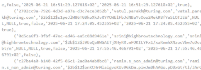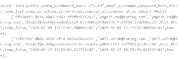 一位威胁行为者称他正在售卖一份美国人工智能公司图灵Turing Vision数据,泄露内容包括"uuid",email,username,password_hash,first_name,last_name,is_active,is_verified,created_at,updated_at,is_admin等字段。
