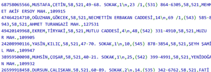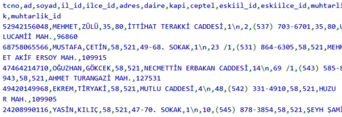 一位威胁行为者称他正在售卖一份土耳其政党Saadet Party数据,Saadet Party成立于2001年,主要由土耳其的保守穆斯林支持。包含姓名、姓氏、城市、地址、工作、Teskilat、电话号码等字段,该威胁行为者称该数据共41万条。